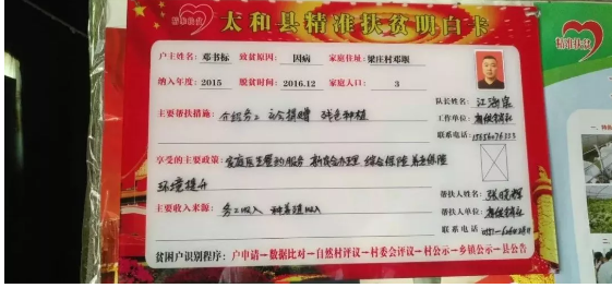 自从纳入扶贫户,家里也张贴了“太和县精准扶贫明白卡”,但从未见过帮扶人员来过,更不认识帮扶人员,生活还和以前一样苦苦度日。
